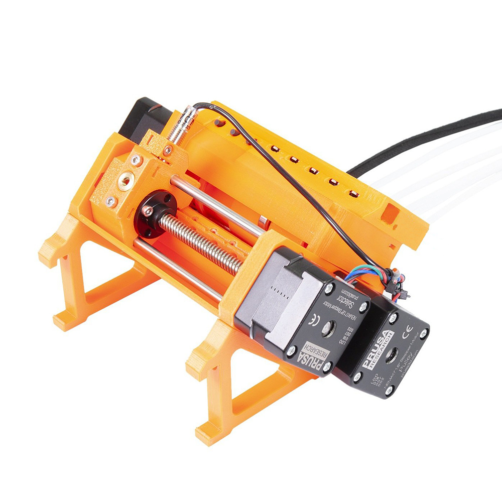 MultiMaterial Upgrade от Джозефа Пруши предназначен для использования совместно с принтерами от того же производителя. На данный момент актуальной является версия 2.0, которая позволяет одиночному директ-экструдеру использовать в одном процессе печати до пяти разных катушек пластика. Само устройство является, по сути, большим экструдером, в котором используется каретка для переключения между нитями пластика. Этот апгрейд имеет целый ряд полезных функций, который включают в себя как печать одинаковым филаментом разных цветов, так и разными филаментами. Имеется также интересная функция, позволяющая автоматически переключаться с одной катушки на другую, когда пластик на первой катушке полностью заканчивается. На популярных торговых интернет площадках можно встретить и клоны этого механизма, однако не совсем понятно, имеет ли реплика этого устройства полностью аналогичный функционал.