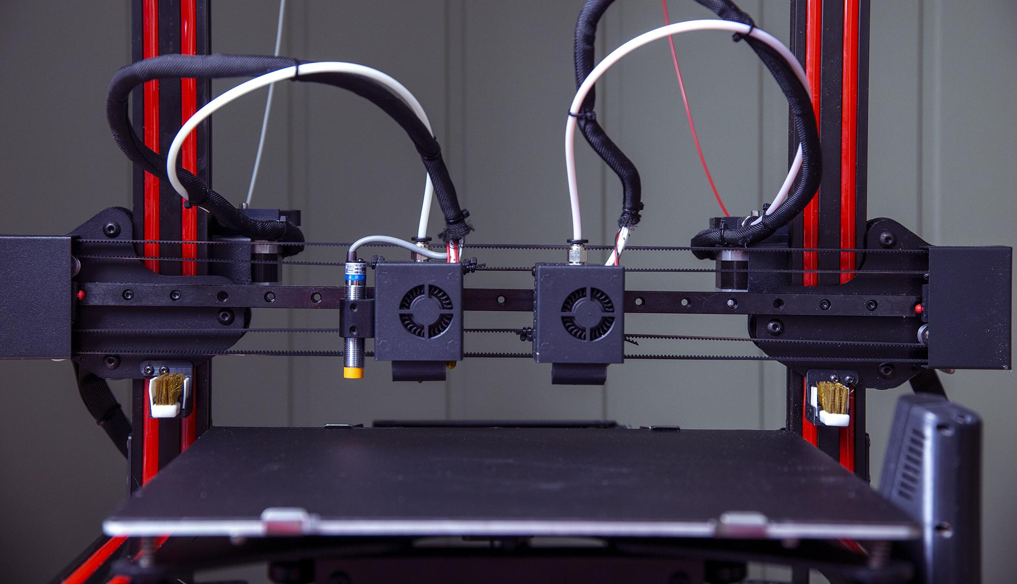 Есть и другие преимущества. С таким хотэндом можно комбинировать материалы основной модели, улучшая её итоговые механические характеристики, или удешевляя процесс производства. К примеру, части детали, которые воспринимают больше нагрузки, чем другие, можно напечатать из более прочного филамента. Или же другой пример: необходимо напечатать большую модель из красивого дорогостоящего пластика. Этот процесс можно удешевить, выполнив заполнение модели из более дешевого материала.