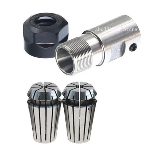 Ещё одним немаловажным критерием при выборе и эксплуатации шпинделя является патрон и способ его крепления. 1: Шпиндель с интегрированным цанговым патроном – шпиндель, у которого на валу сразу имеется посадка под цанги и гайку ,иными словами цанговый патрон. Чаще всего патрон и цанги стандарта ER.