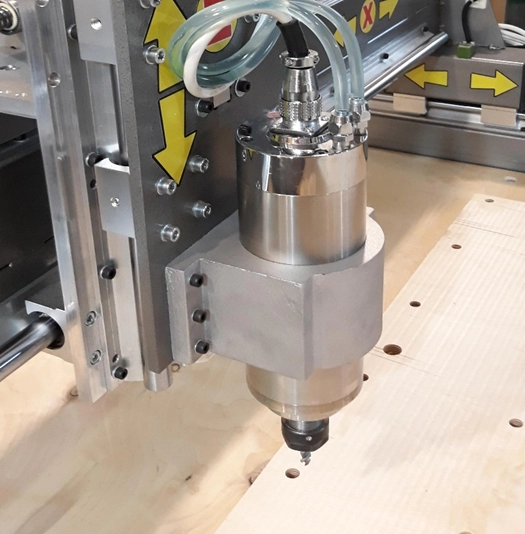 Плюсы воздушного охлаждения шпинделя заключаются в компактности: не требуется ёмкость с жидкостью, насосы, шланги идущие к шпинделю. Нет затрат на охлаждающую жидкость и поддержание системы в рабочем состоянии.