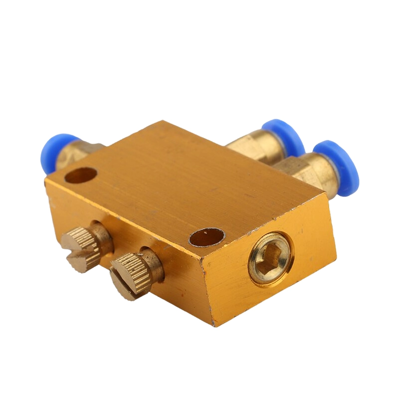 Распределитель для подачи жидкой смазки с регуляторами. Соединения - быстроразъёмные (цанговые).