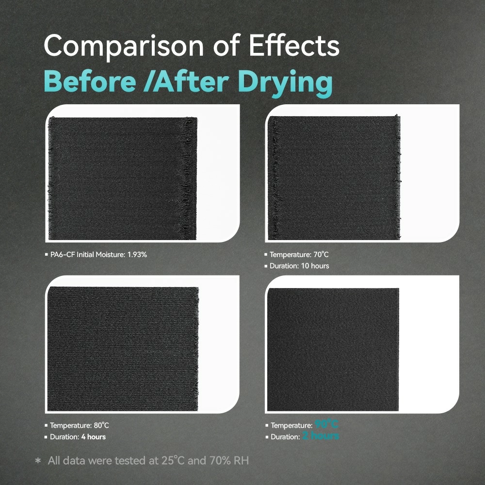 Удаление влаги из гигроскопичных материалов (нейлон, PVA, PETG).