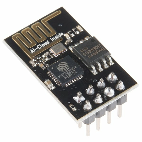 ESP-01 — плата-модуль WiFi на базе популярного чипсета ESP8266EX. На борту платы находится микросхема Flash-памяти объёмом 2 МБ, чип ESP8266EX, кварцевый резонатор, два индикаторных светодиода и миниатюрная антенна из дорожки на верхнем слое печатной платы в виде змейки. Flash-память необходима для хранения программного обеспечения. При каждом включении питания, ПО автоматически загружается в чип ESP8266EX.